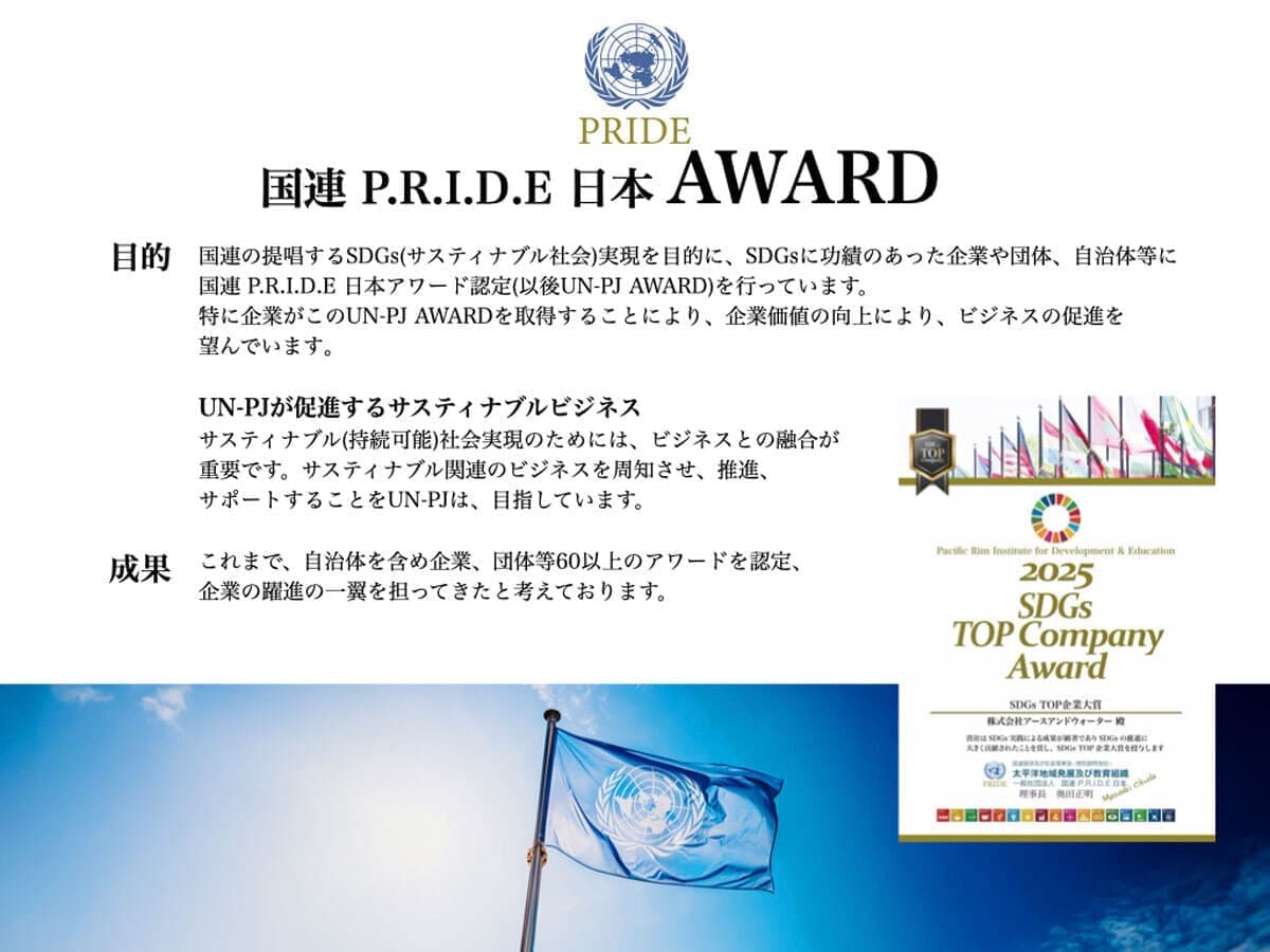 SDGs TOP企業グランプリ受賞/株式会社アースアンドウォーター