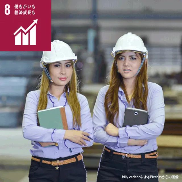 持続可能な開発目標(SDGs)は、生産性の向上と技術革新により、持続的な経済成長を促進することを狙いとしています。これを達成するためには、起業と雇用創出を促す政策の推進だけでなく、強制労働や奴隷制、人身取引を根絶するための効果的な措置を取ることも重要です。こうしたターゲットに留意しつつ、2030年までにすべての女性と男性の完全かつ生産的な雇用とディーセント・ワーク(働きがいのある人間らしい仕事)を達成することを目標としています。ディーセント・ワーク(働きがいのある人間らしい仕事)は、持続可能な開発のための2030アジェンダを構成する17のグローバル目標の一つです。複数の目標を同時に達成するためには、包括的なアプローチが必要不可欠です。