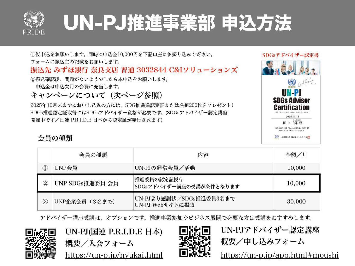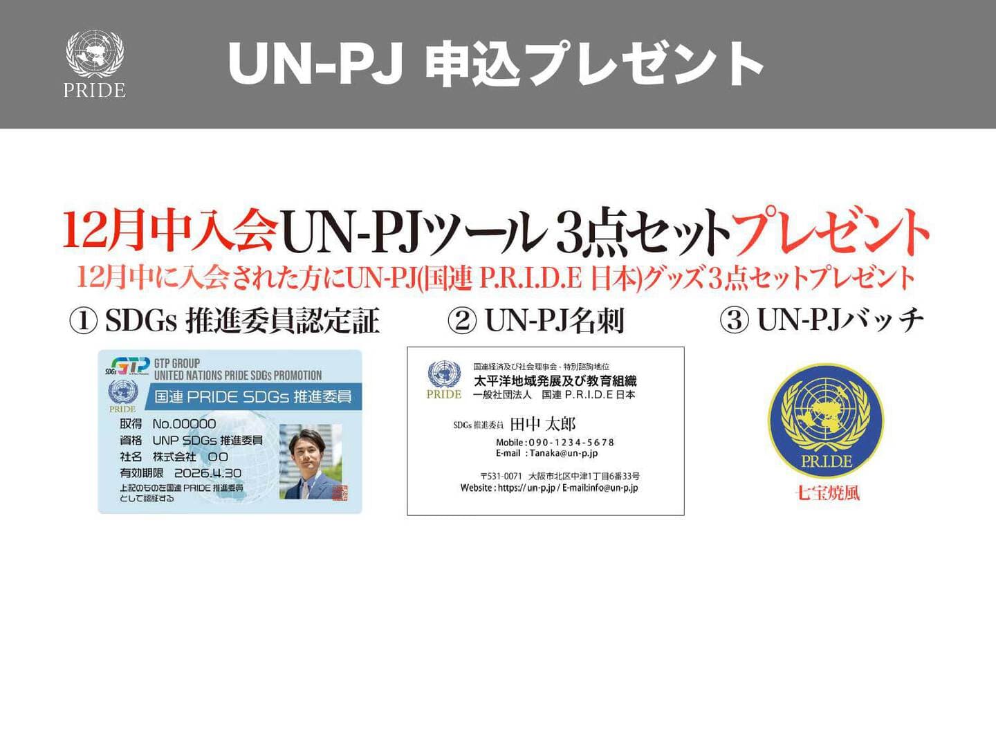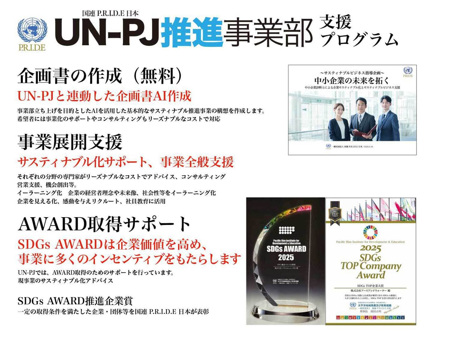 これらをUN-PJの公認事業として展開することで、個々の活動における社会的信用と意義を「見える化」し、圧倒的な注目度とスケール感を創出します。